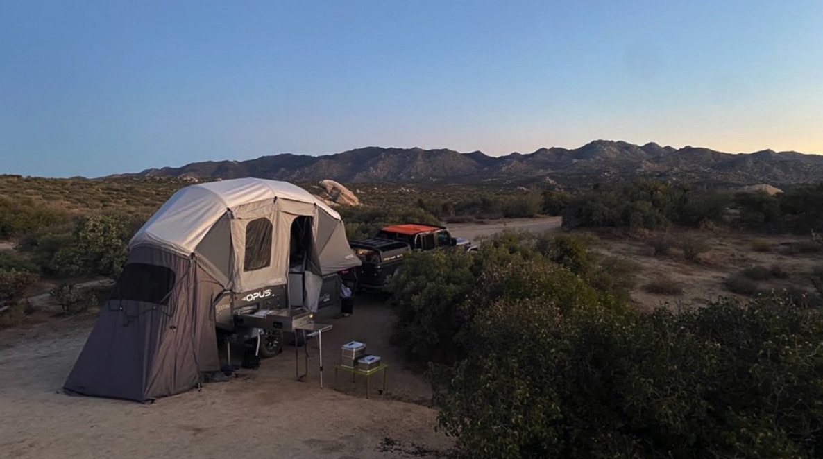 One of their favorite things to do is eat meals together outdoors (at night and early mornings) – “The Opus lets us get out to the most remote places, and make a campsite with the luxury and comfort of a fantastic kitchen, a fridge, and all the amenities, yet we’re still so remote.”