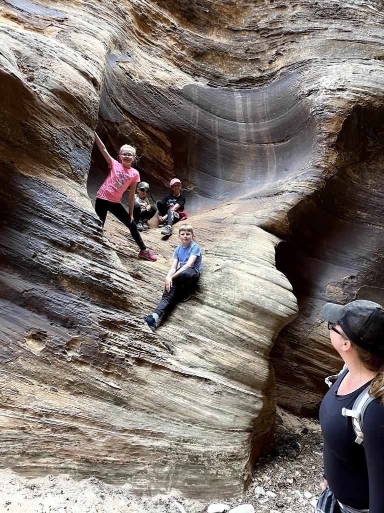 The last two nights we camped at the Virgin River near the Belly of the Dragon. The first day that we got there the kids were in their bathing suits and were playing in the sand and in the water.”